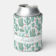 A chic white background decorated with a whimsical pattern of painted cactus, cacti and succulents and red and green hearts.