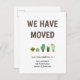 A simple and casual "we have moved" announcement featuring a cute vector drawn green cactus in a pot and sans serif font. Personalise it with your new address. Feel free to contact our shop for further enquiries.