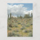 Sweeping view of a pastoral cowboy view of the blooming desert. Gentle clouds swirl over the soft greens of the desert scrub brush and cacti. Colour photograph taken in the desert outside Scottsdale, a suburb of Phoenix, Arizona. Personalise the Arizona Sonoran desert postcard with your own text and images using the "Customise It" option.