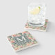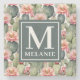 Cactus Pattern Pink Flowers Monogram Stone Coaster