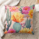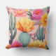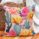 This vibrant pillow showcases a blooming cactus garden set against a soft blush pink background. Featuring detailed succulents with large yellow, orange, and pink blossoms, the design bursts with colour and warmth. Perfect for a southwestern, boho, or summer-inspired décor style, it adds a lively and cheerful accent to sofas, patios, or bedrooms.