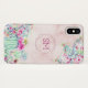 This cactus iphone case features a watercolor style cactus and succulents design with a monogram inside a faux rose gold foil geometric shape with blush pink marble background. Personalise it with your own initials.