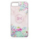 This cactus iphone cover features a watercolor style cactus and succulents design with a monogram inside a faux rose gold foil geometric shape with blush pink marble background. Personalise it with your own initials.