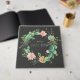 Capture the memories of your special day with this gorgeous rustic boho wedding guest book. The front features a stunning wreath of hand-painted succulents and cacti set against a bold black background, while the back offers a soft contrast in pale green. Both colors are fully customizable, allowing you to match your specific wedding palette perfectly.