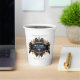 Elegant paper cups with Caduceus, for your medical student graduate. Pretty banner in navy blue with gold filigree frame. White background can be changed to any colour you like. Add your name , university and your year of graduation.
