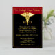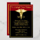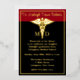 Medical School graduation card bearing the Caduceus symbol and degree (M.D., D.O., R.N., etc.). This invitation features a royal blue/black design on both sides. Available in numerous colors. All print and accents on front of invitation are genuine Italian foil. Back of invitation includes graduate name, Can be personalized with your own images, artwork, etc.