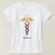 Caduceus symbol in golden, blue & red on white T-Shirt. Text can be personalised.