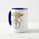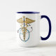 Caduceus with Beaded Stethoscope on a Blue and White Coffee Cup or Mug