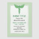 Single snake caduceus with mint leaves on light green background.