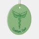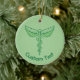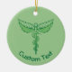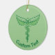 Single snake caduceus with mint leaves. Custom background colour. Custom text on both sides.