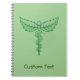 Single snake caduceus with mint leaves. Custom background colour. Custom text.