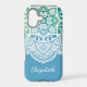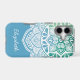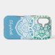 The elegant Caelum Personalized iPhone Case in botanical green and sky blue, is designed to be customized with your name or special words for a unique touch. Perfect for anyone who loves mystical boho style.