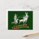 A parody of the traditional "Seasons Greetings" holiday message. Image of Julius Caesar in Santa hat and throwing up a peace sign. The chariot is pulled by a group of reindeer launching themselves into the sky. Text reads: "Caesar's Greetings!".