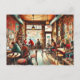 The watercolor painting beautifully captures an everyday scene in a small community cafe in Bucktown, Chicago, showcasing the unique local vibes of the neighbourhood. The cafe is depicted with a cosy, bohemian interior, featuring eclectic furniture, vibrant wall murals, and whimsical strings of fairy lights that create a charming ambiance. The colour palette is warm and inviting, dominated by deep reds, oranges, and browns that enhance the welcoming atmosphere. Patrons of various ages and backgrounds are seen enjoying their time, some engaged in deep discussions, others quietly reading or working on their laptops. The cafe exudes a casual and friendly atmosphere, underscored by a community bulletin board filled with local events and notices, which bolsters the sense of connection and local charm. This scene perfectly encapsulates the lively and close-knit spirit of the Bucktown community.