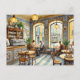 Cafe in Lisbon Yellow Tram Watercolor Postcard