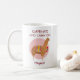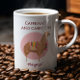 This delightful coffee mug for alpaca and llama fans features the playful phrase "Caffeinate and Carry On" in bold burgundy lettering at the top, paired with a whimsical alpaca illustration framed by a blush pink circle. Beneath the alpaca, personalise the design with your name in an elegant script, making it uniquely yours.