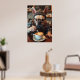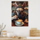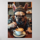 Start your day with a laugh—this poster showcases a French Bulldog in human form, decked out in a green and white flannel shirt, suspenders, and thick glasses. He’s mid-latte pour behind a trendy coffee bar, showing off serious barista focus. His expression says he’s already had three shots of “Bark Roast.” Silly chalkboard drink names complete the scene. A perfect pick for kitchens, cafés, or anyone who loves dogs, coffee, and quirky wall art.