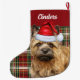 Cairn Terrier Dog with Holiday Plaid Personalised Large Christmas Stocking