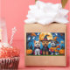 A playful Halloween scene featuring a mischievous little pup peeking out of a carved pumpkin, surrounded by spooky-fun fall vibes. With cheeky charm and autumn colours, it’s the perfect touch of humour for the season.