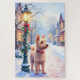 Bring holiday joy to the season with this delightful Christmas card featuring a Cairn Terrier on a snowy village street. A glowing lamppost, holly accents, and soft snowfall create a warm and festive atmosphere in watercolor style. The blank interior leaves plenty of space for your personal holiday wishes, perfect for dog lovers and seasonal correspondence.