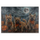 Unleash the spooky spirit with this eerie Halloween design featuring a pack of dogs under a dark, moonlit sky, surrounded by flying bats and glowing pumpkins. Perfect for those who love a touch of frightful fun with their furry friends!