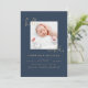 This photo birth announcement template features a modern minimalist design with an edgy handwritten font with a modern navy blue and gold colour combination. Use this template to edit *most* wording, font, font colour, and the background colour to match your style.