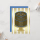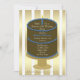 This elegant Cake Surprise 50th birthday party invitation features a chocolate cake with blue accents on a gold and white background. A great invitation for a surprise 50th birthday party. Copyright henishouseofpaper