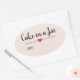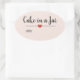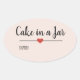 Modern oval "cake in a jar" sticker with a black script font on a blush pink background embellished by a cute red heart. Customise text.