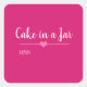 Modern cake in a jar sticker with a white script font on a pink background embellished by a cute heart. Customise text.