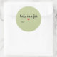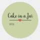 Modern "cake in a jar" sticker with a black script font on a sage green background embellished by a cute red heart. Customise text.