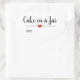 Modern oval "cake in a jar" sticker with a black script font on a blush pink background embellished by a cute red heart. Customise text.