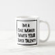 Funny slogan on a mug that says "I'm a Cake Maker. what's YOUR super talent?". Mug for a Cake Maker. Black and white bold text.