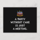 Family and friends getting together to celebrate over a meal know that A party without a cake is just a meeting. Check out this funny custom design on tees, shirts, mugs, pyjamas, gifts and apparel.