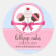 © 2012 Socialite Designs. Our couture cake pops bakery box seals / stickers have elegant cake pops with ribbon and bow, flowers and swirls inside a lace circle. The background has a subtle damask pattern.