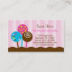 Identify your business in style with this cute, colourful and eye-catching bakery business card. Great for a bakery that specialises in cake pops and other sweet treats. Features three cake pops with different designs on a stripes background. Add your information and make it your own.