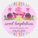 © 2021 Socialite Designs. Our elegant bakery box seals / stickers has a colourful cupcake, cookie and cake pop design with a colourful background, swirl, and stripe elements. A wonderful, standout design to use as seals on bakery boxes to promote your baking business.