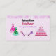 A delightful business card to showcase your birthday party company. Fancy cake with star candles and colourful designs. Two magic wands in pink and purple. and colourful party hats. Customise with all of your own information as desired.