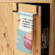 This cute kitchen towel is handy to have around. It features basic baking and cooking measurement conversions with illustrations of yummy cakes and treats set against a light blue background. This towel is ready to be personalised with a name or other message in cream coloured lettering at the bottom.
