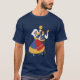 I give wanted to give this a 4 instead of a 5 because these Basic DARK T0shirts run unexpectedly SLIM or Narrow. Which is great if you do not have a potbelly, but I have a paunch. It isn't the shirt's fault that I've got a beer belly. The design and shirt itself is a quality cotton shirt. The color is more of a deep purple, but still a very pretty color. The Basic DARK T-shirts run a bit SLIMMER than the Basic Ts. The neck is a fraction narrower (or seems to be narrower) also. I'm a paunchy middle-aged woman and my neck is 12 inches (31cm) thick and the neckline fell about the same as in the photo of the man, and I had the desire to tug it a bit. So if you're a thick necked man or like loose shirts, be aware these are slimmer shirts. Once I get rid of my lockdown paunch it'll look great. The shirt washed well in cold water with no apparent bleeding. We don't have a dryer, so it hung dry. Did not shrink. Love the colors and the design. The design looks smaller on my shirt than it does on the model on-line. But still, it looks good on the shirt. The printing looks as it does on the model, just the size seems fractionally smaller. Washed garment in cold water, hung dry and design appeared unaffected.