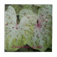 Ceramic tile that features a photo image of light green Caladium bicolor leaves with pink speckles. Also known as Angel Wings, Heart of Jesus, and Elephant Ear. A lovely, floral design! Select your tile size. Makes a great kitchen trivet!