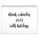 Calendar 2023 with holidays and changeable text on each page
