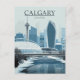 Celebrate the modern energy of Calgary, Canada, with this stylish, vintage-inspired postcard showcasing the city skyline in winter. The design features key landmarks like the Calgary Tower and the distinct new architectural buildings, all dusted with snow, reflecting in the partially frozen river. This travel poster is perfect for lovers of Canadian cities, winter scenes, and contemporary urban art. Ideal for sending greetings, keeping as a keepsake, or framing as modern wall decor.