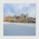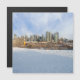 A picturesque view of Calgary's skyline adorned with snow in the foreground, set against a backdrop of clear blue skies, blending urban charm with winter's serenity.