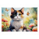 This enchanting design captures the serene beauty of a calico cat nestled among blooming spring flowers, with delicate monarch butterflies fluttering nearby. The soft watercolor style brings a dreamlike atmosphere to the scene, blending gentle pastels and vivid floral tones to create a magical, storybook setting. The cat’s expressive green eyes and fluffy tri-colour fur add warmth and charm, evoking a sense of peace and curiosity. Ideal for lovers of animals and whimsical nature art, this illustration brings the joy of springtime and the gentle wonder of feline companionship to life. Perfect for brightening up cosy spaces, reading nooks, or children’s rooms, the design feels both tender and imaginative. AI generated artwork.