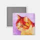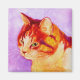 This magnet features my watercolor painting of a thoughtful calico: "Mango". I came up with the title first and that determined the painting's colours. The real cat was a calico with some grey tabby markings. She's the same cat as the one on the "Green-Eyed Girl" magnet.