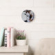 Great quality clock and very well made. Just what I was looking for to finish my hall off. Looked in loads of other websites and eventually found exactly what I was looking for at Zazzle. Designe and colour is perfect. I just love it. Bought the medium size and fits well for where I was placing it.