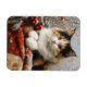 Flexible magnet art featuring a painting of beautiful calico cat in a winter scene surrounded by red berries, pine sprigs and cosy fabrics.