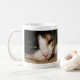 Coffee mug featuring Macy, a young, full blooded Calico cat has climbed under a rug thinking she is hiding, to play. Did you know that only the female Calico's have all 3 colours (brown, black and White)? Male Calico's only have black and white. Looking for more prints or products? Feel free to visit my store: http://www.zazzle.com/timelessmomentsphtgy This photo was taken by Jennifer White with Timeless Moments Photography. All images are copyrighted © Timeless Moments Photography/Jennifer White. All rights reserved.