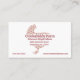 A beige chicken with a simple floral pattern looks over her shoulder, with text forming the shape of her body, on this business card for a chicken farm or egg business, or even a country-themed store. Simple, cute, and professional.