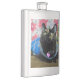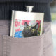 The product is a good size and came exactly as it was pictured. The lid is not attached to the flask, which could be dangerous on drunken nights... The print came out surprisingly well and looks very sharp. Would definitely recommend.
